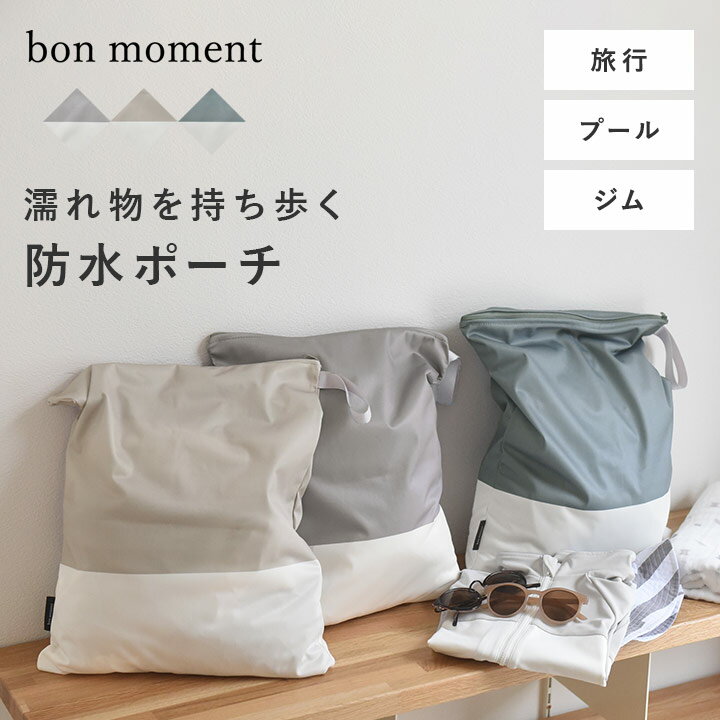 【ネコポス対応】濡れたもの、汚れたものもストレスフリーに持ち歩き海やプールで濡れた水着、温泉旅行で濡れたタオルや脱いだ服を持ち歩くのにも重宝する、bon moment(ボンモマン)「濡れたまま収納できる 防水ポーチ」。